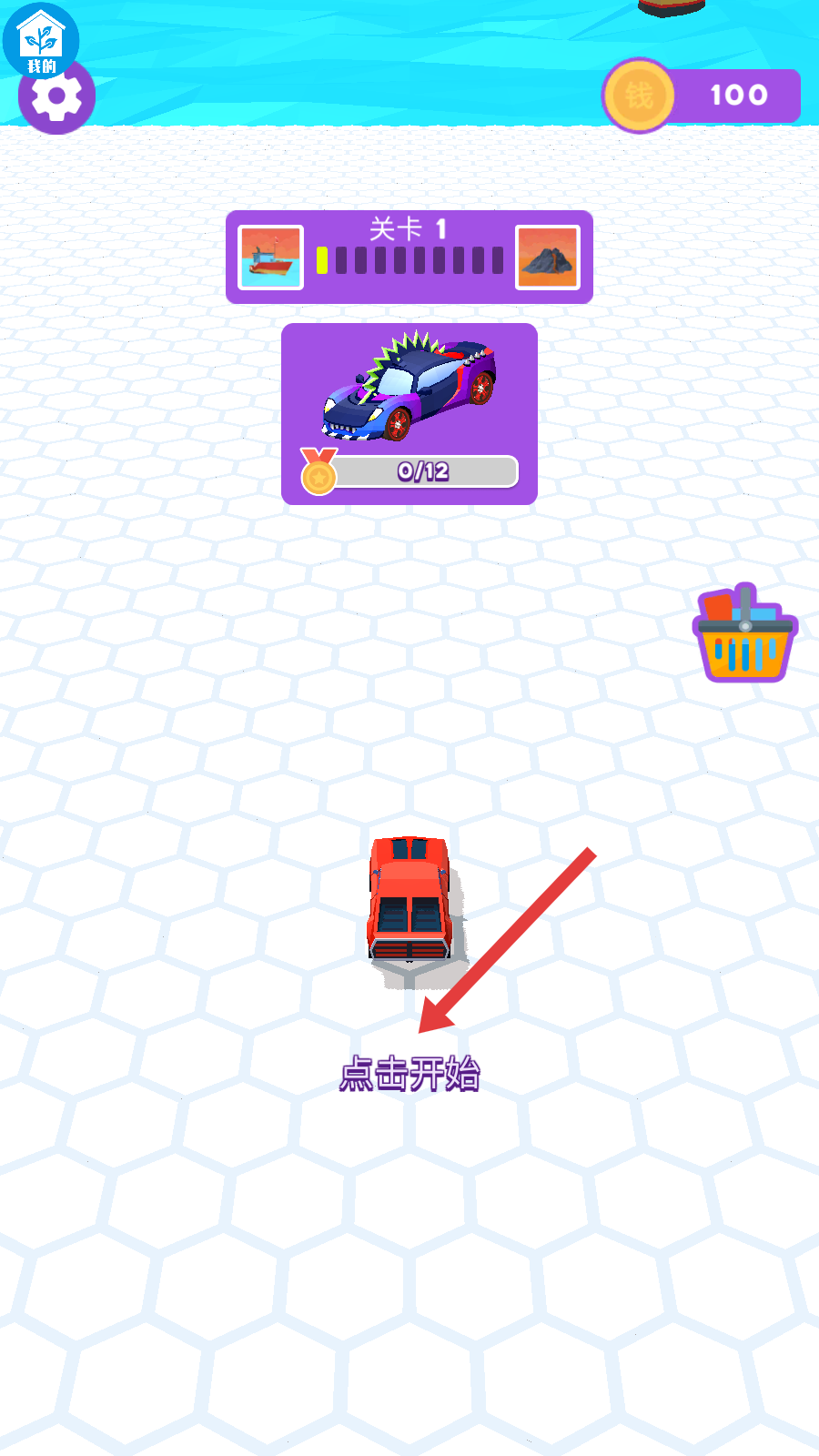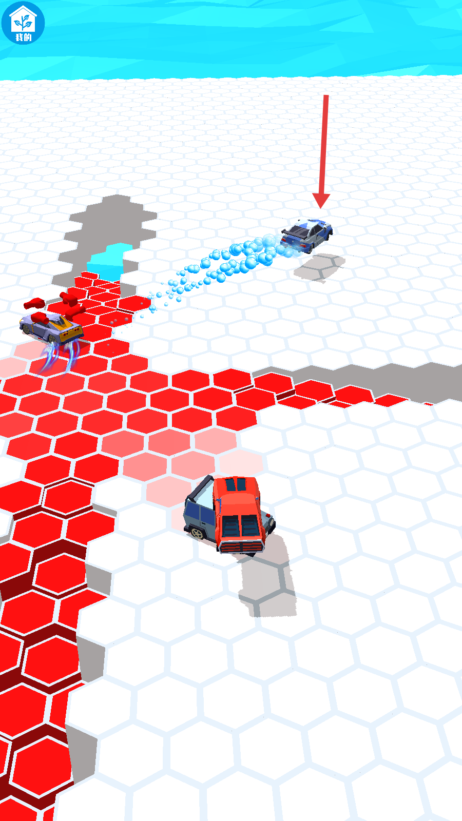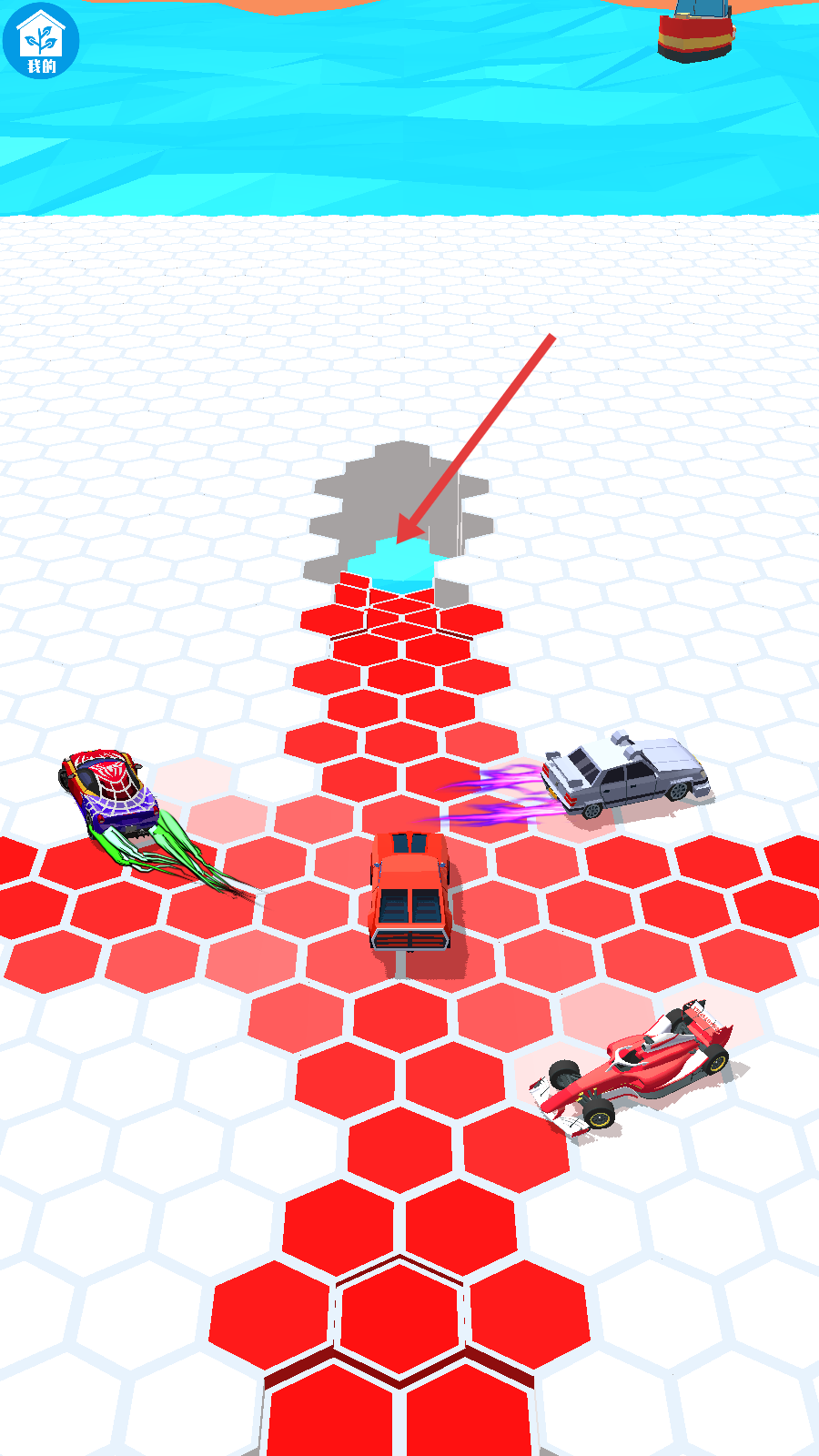 3、驾驶车辆在六边形区域行驶,躲避红色区域。