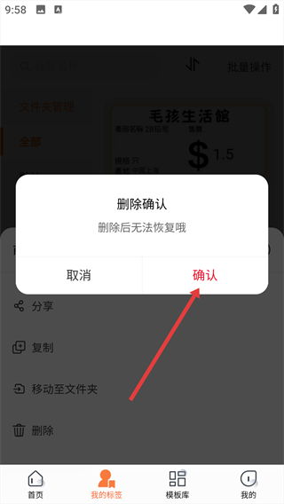 2、在【我的标签】页面,点击目标标签下方的按钮。