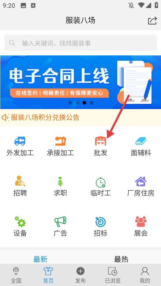 1、在首页点击【批发】,进入批发分类页面。