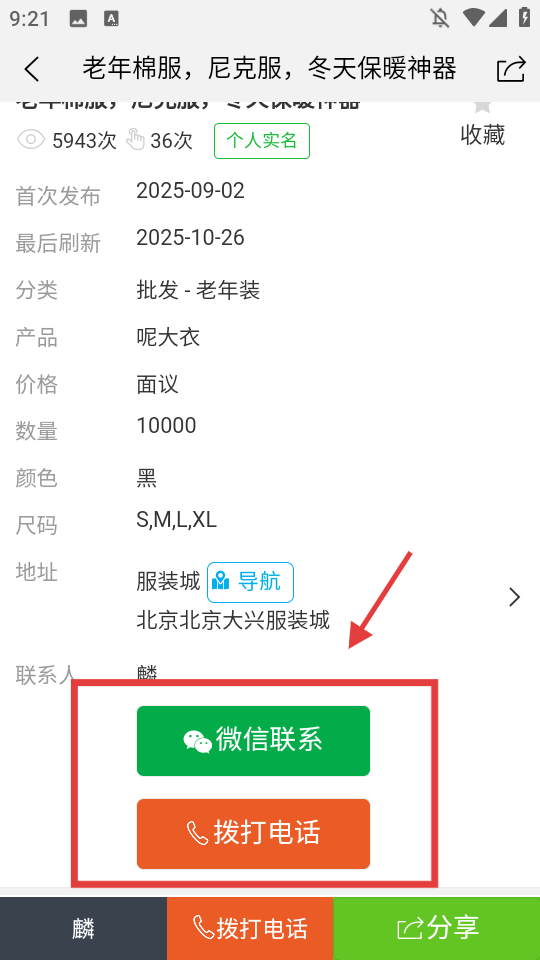 4、可通过【微信联系】或【拨打电话】与商家沟通批发事宜。
