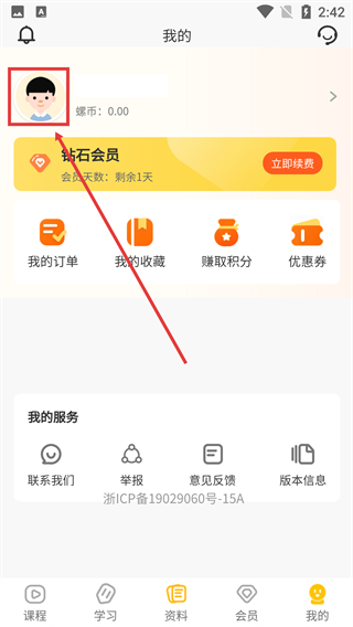 2、进入页面后,点击左上角的【头像】区域,即可进入包含个人信息的设置页面。