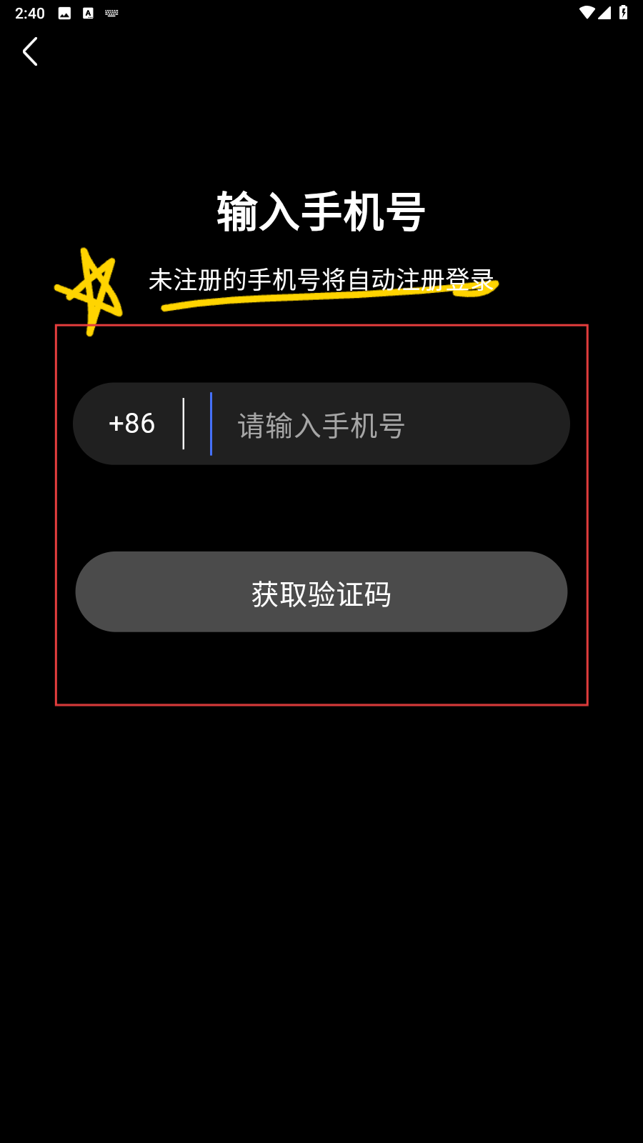 3、输入手机号,点击【获取验证码】,完成验证登录轻向。