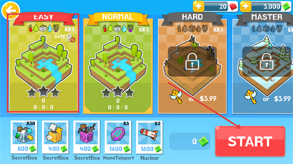 3、选择【EASY】模式后,点击【START】按钮,进入对应难度的游戏关卡。