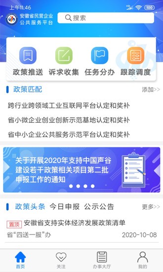 本应用是安徽省民营企业的官方移动应用公共服务平台,由安徽省经济和信息化厅指导建设,致力于打造政策来推动、呼吁、调度任务来做,跟踪整合民营企业智能服务平台,为全省民营企业提供7 * 24小时“不打烊”的优质高效服务。