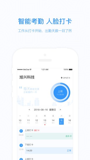 人脸识别考勤:人脸识别,结合GPS定位,可防止出现代人打卡。
