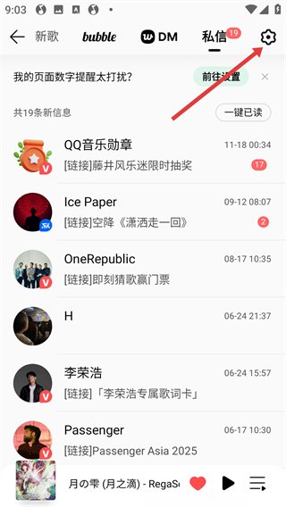 2、进入【私信】页面后,点击右上角的【设置】图标就好啦。