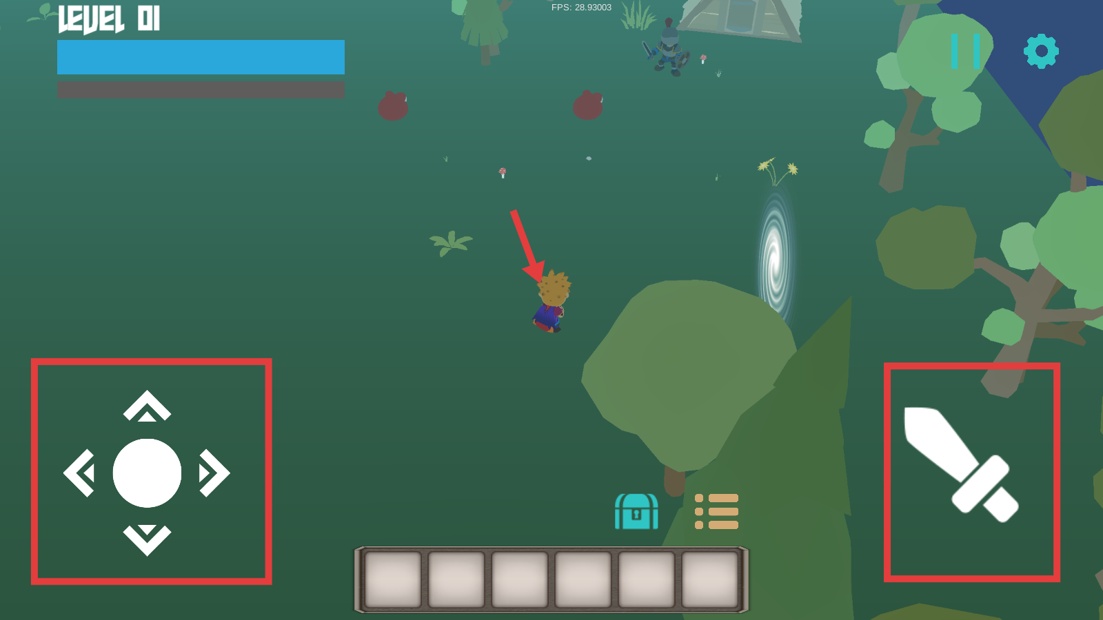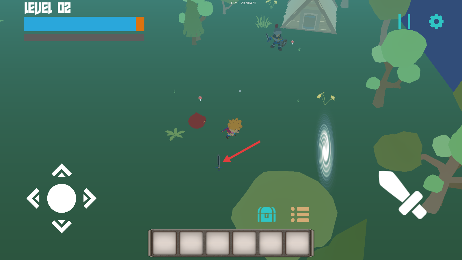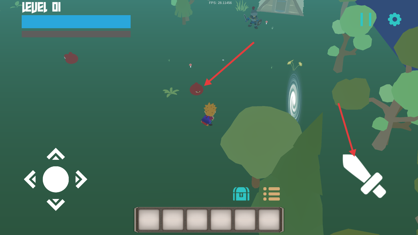 2、使用左侧方向键控制角色移动,右侧剑形按钮进行攻击。