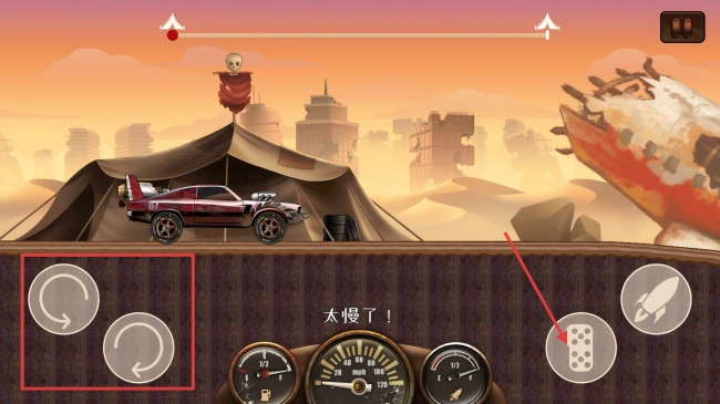 2、使用左侧按钮控制车辆转向,右侧按钮加速,提升车辆速度。