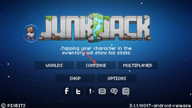 1、进入游戏后,点击【CONTINUE】按钮开始游戏。