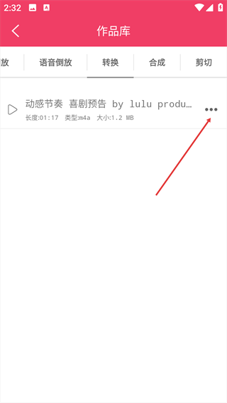 2、点击目标音频条目右侧的三点按钮,展开作品操作的功能菜单。