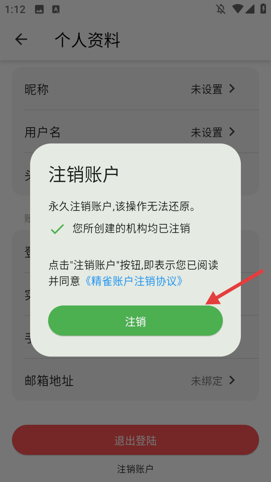 4、在注销确认对话框中点击【注销】,完成注销操作。