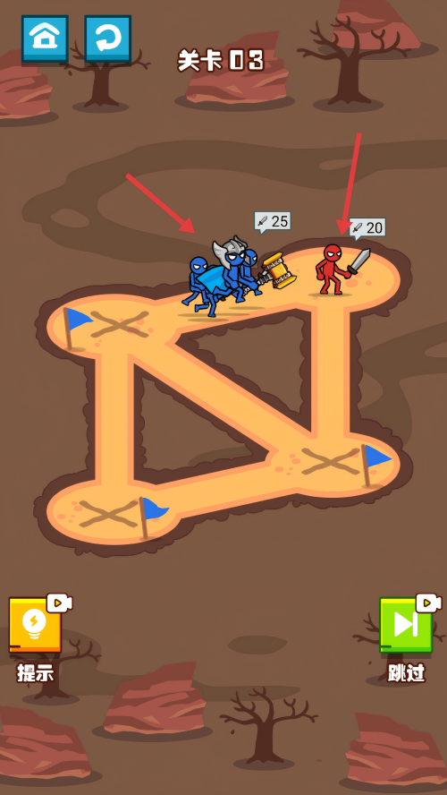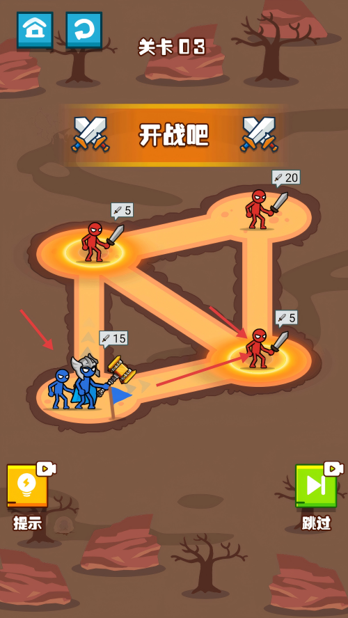 最强火柴人格斗是一款非常有趣的冒险闯关类游戏,采用卡通简约游戏画风,融入火柴人战斗和割草体验玩法。玩家将扮演火柴人首领,通过布局和战力分配指挥军队完成战斗,快速占领地盘歼灭敌人。游戏并非单纯数值对比,需要运用策略应对强大对手,包含多种兵种解锁和战术选择,提供丰富的战场挑战。