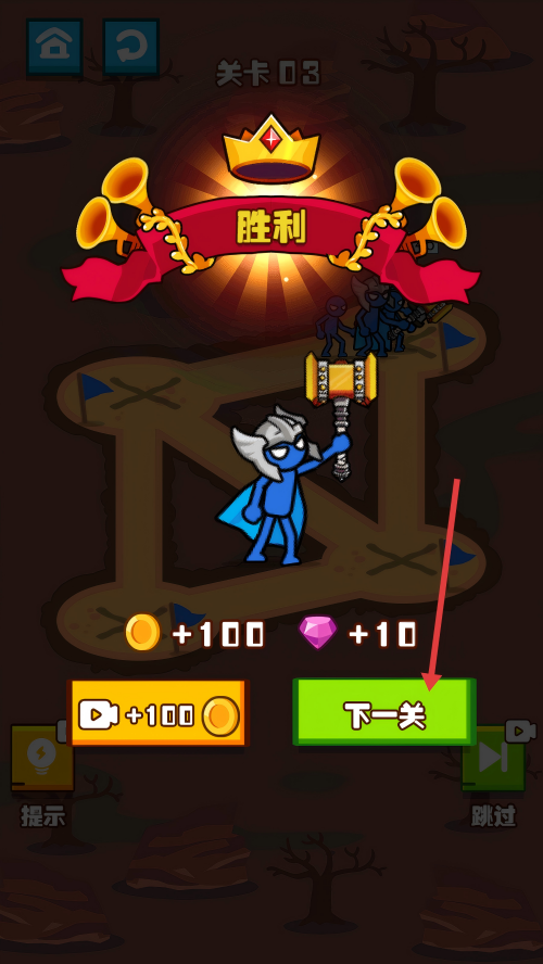 4、关卡胜利后,点击【下一关】按钮,进入下一个关卡。