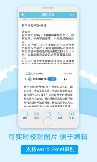 图片扫描手机软件汇集了多种功能,让用户可以通过手机扫描的方式来识别各种不同的文档内容,不管是用于导出文本内还是生成电子文档,都可以通过该软件来进行处理。