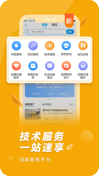 -- APP包含三大创新体系:面向政府、院所、大型企业的创新服务APP——橙智、汇集新一代信息技术、大健康、新材料、智能制造等诸多领域全球先进待转化科技成果的创新产业集群——橙果、具备跨国投资和各国本土化资本服务能力的创新资本联合体——橙资。