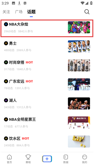 3、在话题板块中,找到【#NBA大杂烩】话题条目,点击可进入详情页。