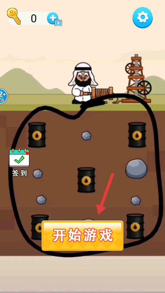 1、游戏初始界面点击【开始游戏】按钮,进入【001】关卡,注意左上角【钥匙】数量为0,可先完成【签到】领奖励。