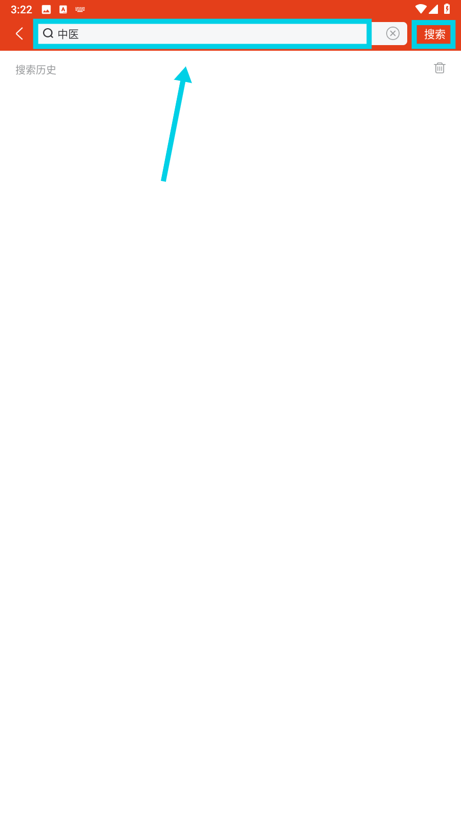 2、在搜索栏里输入关键词,比如【中医】,接着点击右侧的【搜索】按钮,开始检索相关内容。