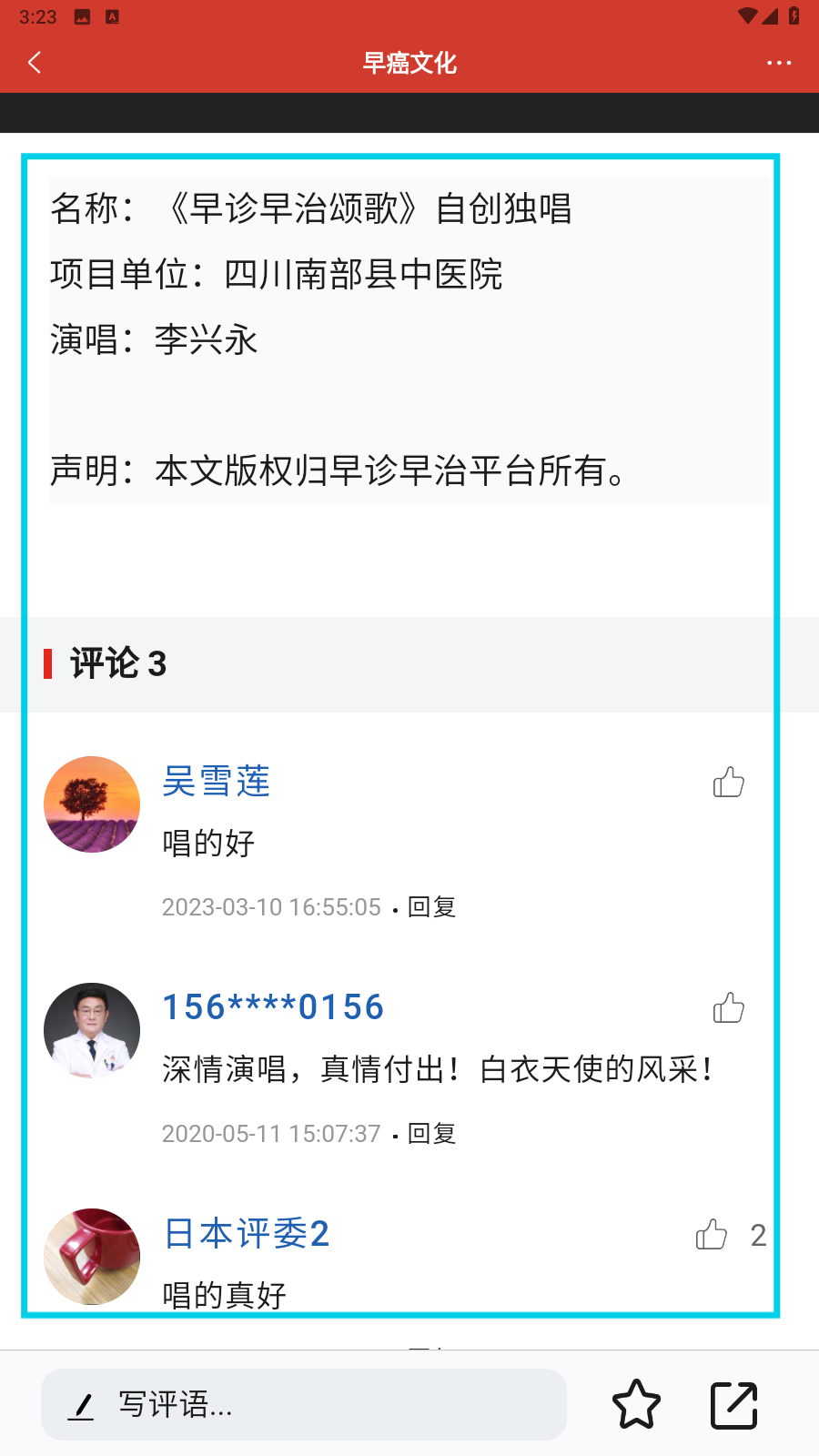 4、进入资讯详情页后,能查看内容详情,还可以在底部的【写评语】处发表评论,和其他用户交流看法哦。