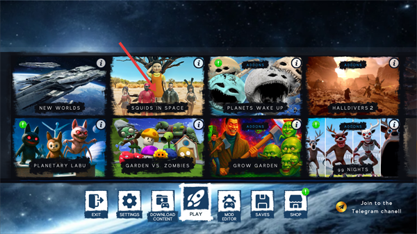1、选择游戏场景,如【SQUIDSINSPACE】,开始游戏。