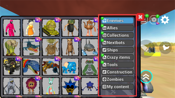 4、在内容列表中选择【Enemies】等分类,查看或选择对应内容。