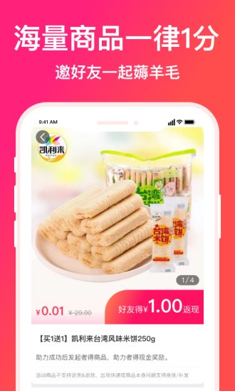 顺播拼团是个非常方便的拼团购物软件,在这里你可以跟很多其他用户一起拼团购物,这样就能享受打折优惠了,平台诸多好货价格都是低于线下的,让你买到就是赚到,新人还可以享受1分拼团福利,让你轻轻松松把商品带回家。