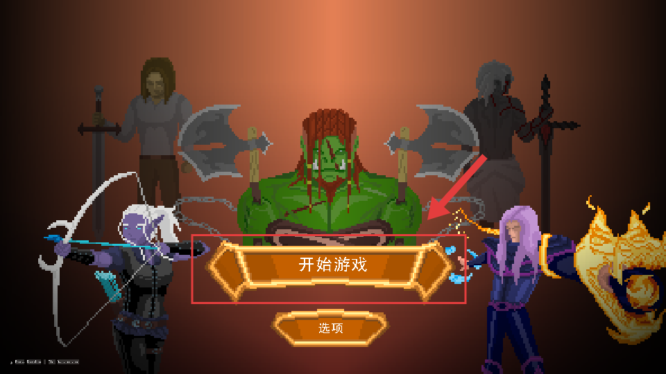 1、首先点击界面中间的【开始游戏】按钮,进入角色选择与参数设置环节,开启游戏流程。