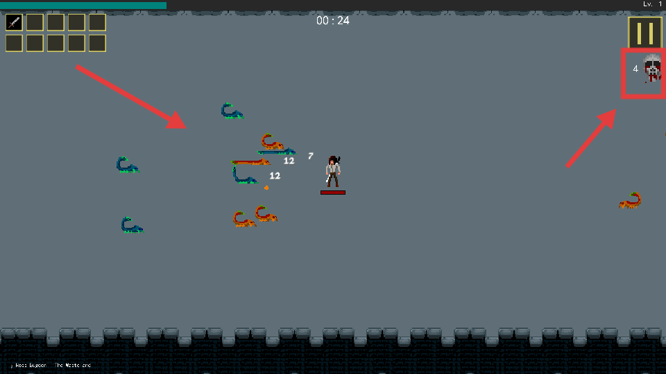 3、战斗中躲避【绿色-蓝色-橙色】蛇形怪物,关注右上角【骷髅-数量】,存活至倒计时结束。