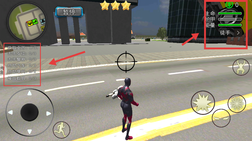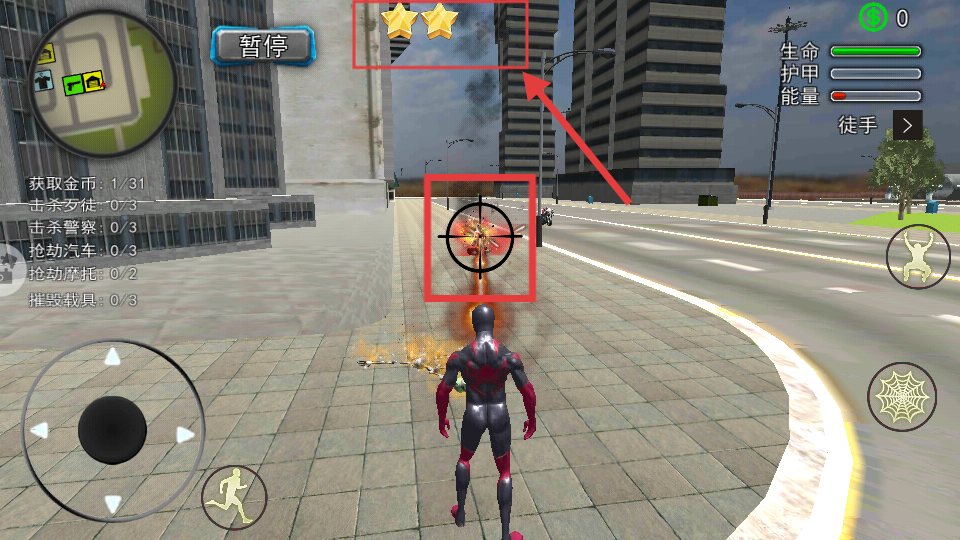 1、超高自由探索:任务之余能控制蜘蛛人在城市任何街区自由探索,没有任何限制。