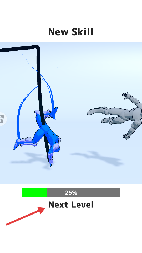 4、击败敌人后解锁【New-Skill】,进度到【25%】时点击【Next-Level】进入下一关。