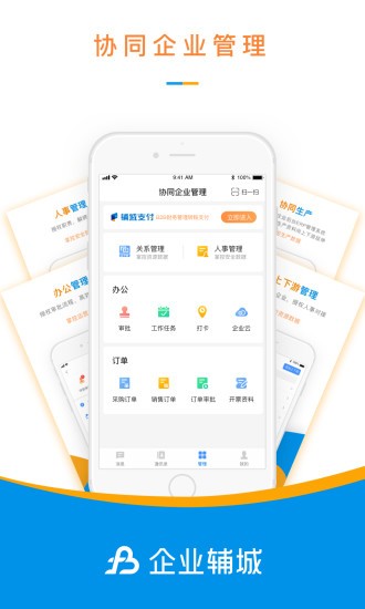企业辅城是帮助企业协作管理的手机app 软件,它可以通过企业账号管理公司员工;员工可以根据不同的板块选择自己的工作需求,及时查看未完成工作任务,可以提升工作效率,是很好的工作管理帮手。