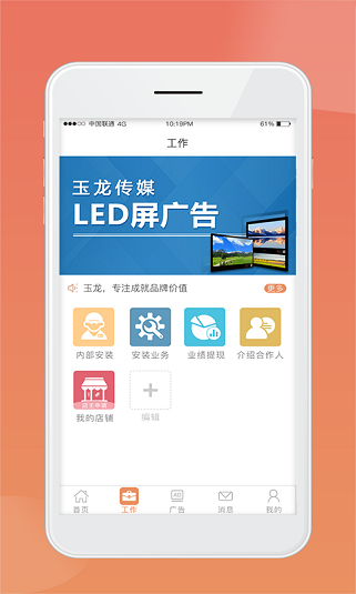 玉龙传媒是为广告行业打造的定制服务软件,你可以定制自己满意的led屏广告,你可以在线查看,还有非常专业的安装业务,无需你自己动手,你还可以线上选择广告投放区域