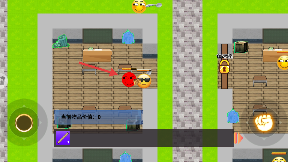 3、进入场景后,注意躲避或攻击带表情的敌人,同时查看【当前物品价值:0】提示,准备收集物品。