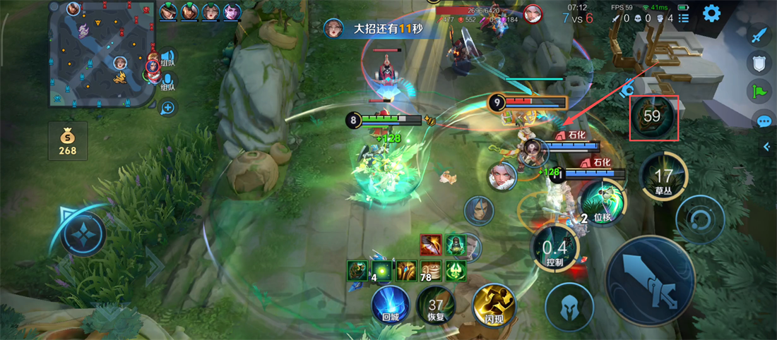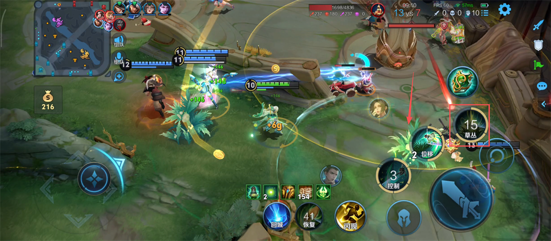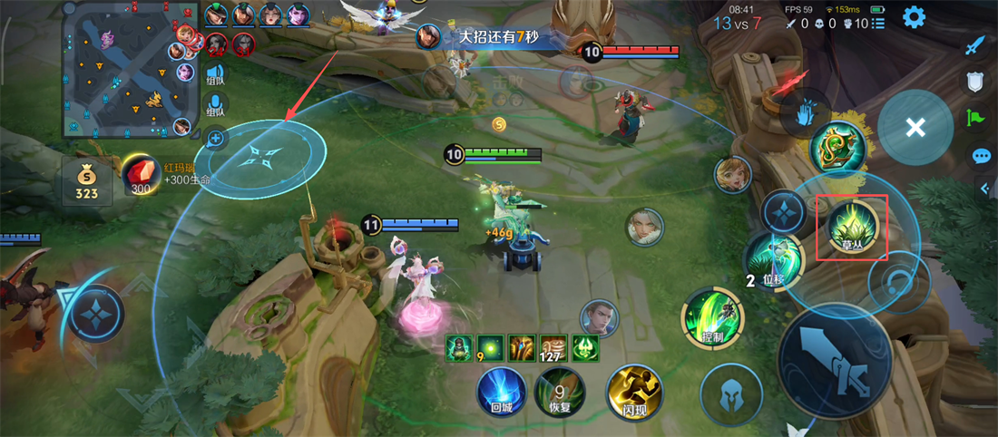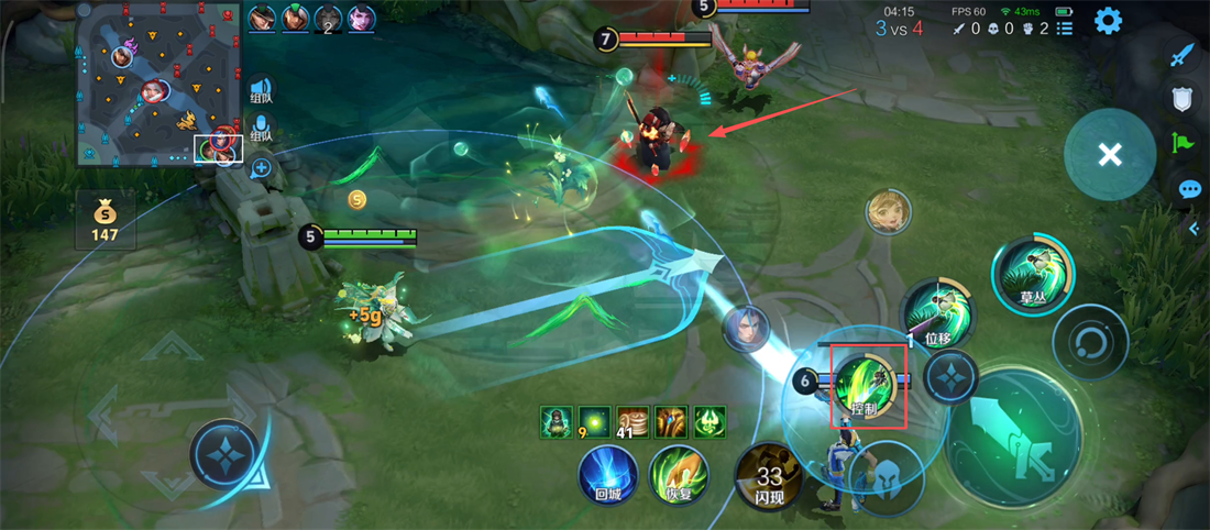 1、敌方追击队友时,咱们果断使用【控制】技能预判阻拦,为队友创造逃生或反打机会呢。