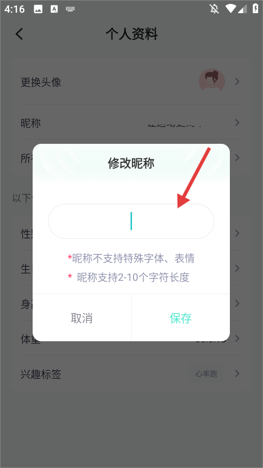 4、在修改昵称页面,输入新昵称,点击【保存】,完成昵称修改操作。