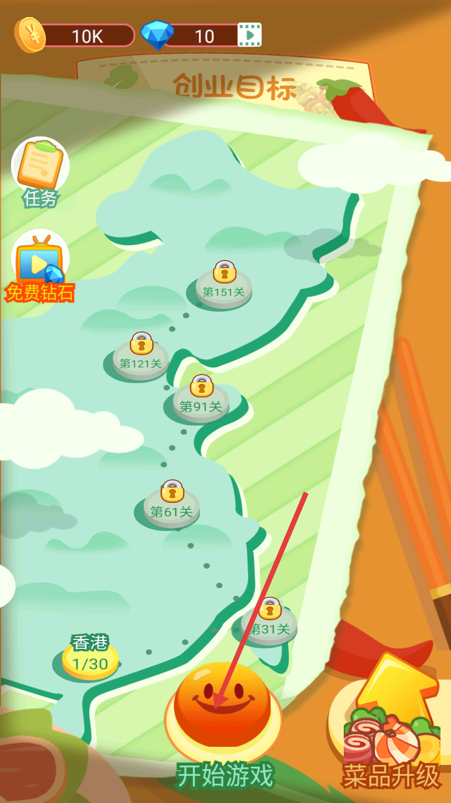 5、关卡进度设计:采用关卡推进模式,每个关卡都有独特的经营目标和挑战要求,保持游戏新鲜感和进阶性。