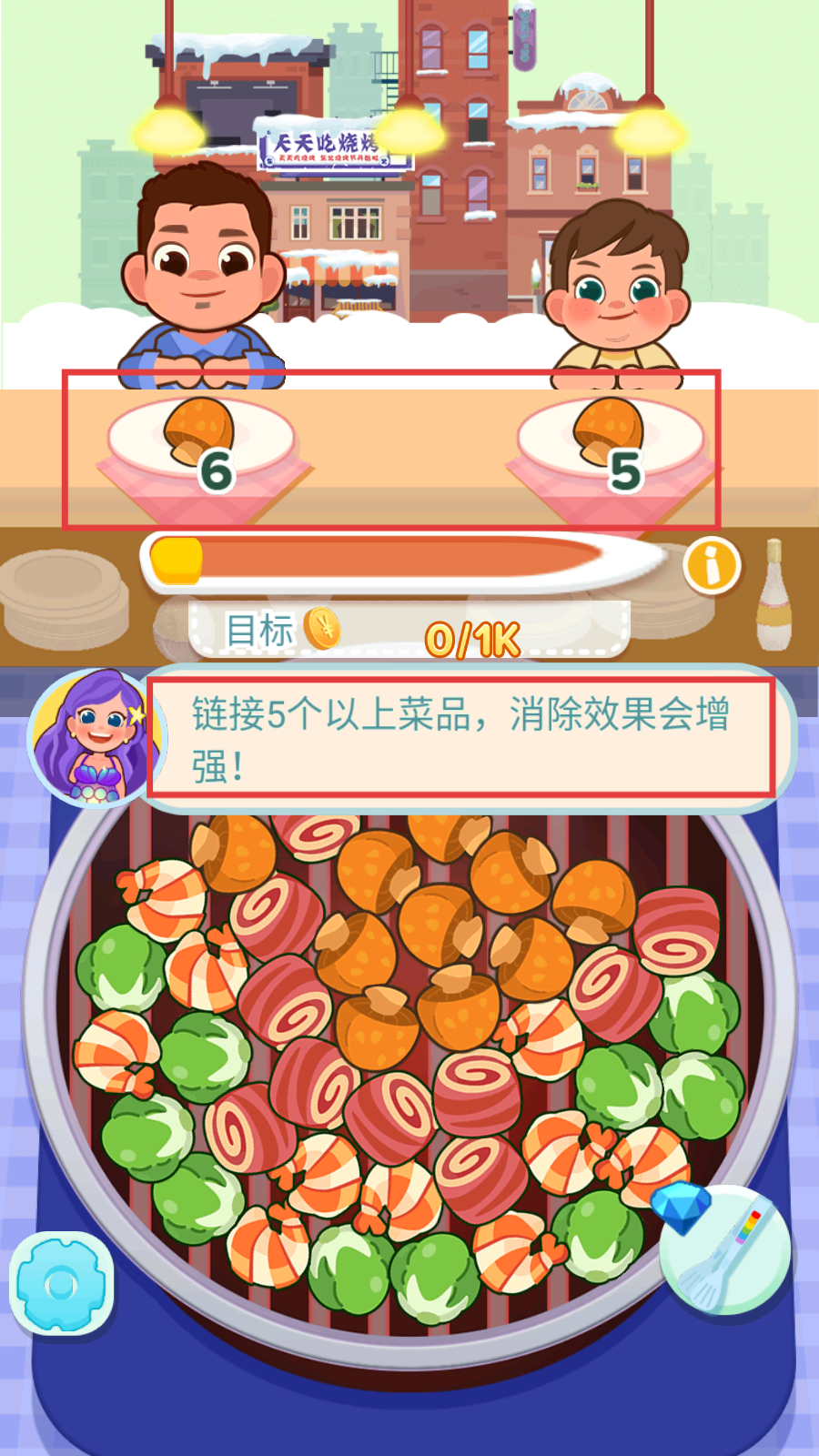 4、链接5个以上菜品,消除效果会增强,助力完成目标金币数。