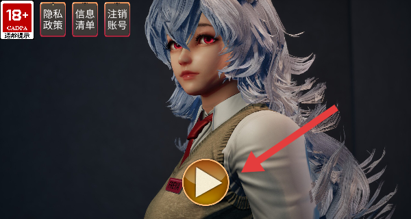 1、游戏启动界面,点击中间的【播放-按钮】进入游戏,注意上方的【18+-提示】。