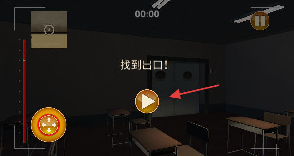 3、进入游戏场景后提示【找到出口】,需操控角色在教室场景中寻找出口位置。