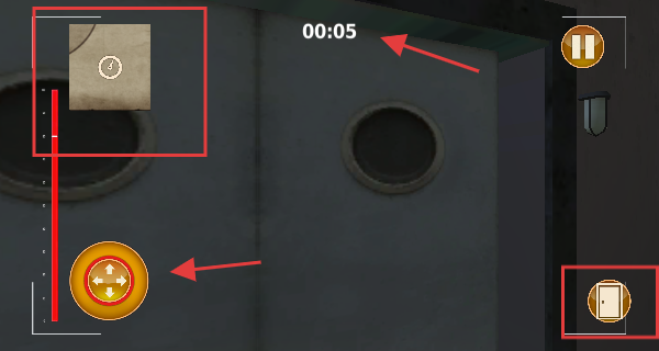 4、游戏中注意顶部的【00:05】时间限制,用左侧【操作-按钮】移动,右侧【互动-点】可触发门开关。