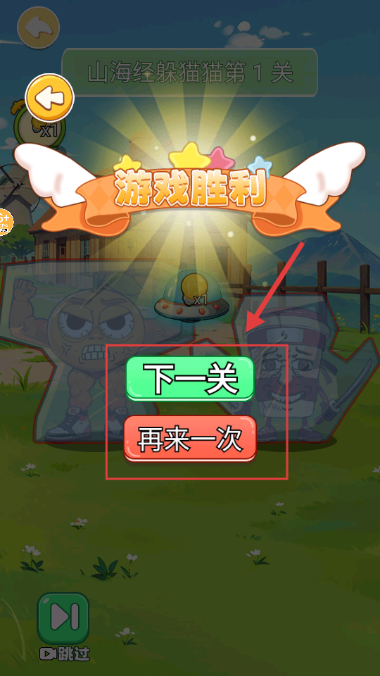 4、胜利后界面出现【下一关】和【再来一次】按钮,点击【下一关】可继续挑战。