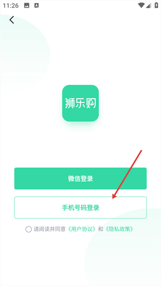 2、选择【手机号码登录】,进入手机号登录界面。