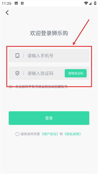 3、输入手机号和验证码。