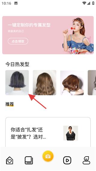 1、打开发型设计软件,点击今日热发型中的目标发型,进入定制发型的选择页面。