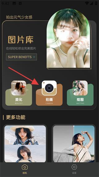 1、进入美容相机界面,点击【拍摄】按钮,进入拍摄界面。