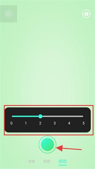 3、若需要美颜,切换到【瘦脸】选项,拖动调节条调整美颜程度(如调到2档)。
