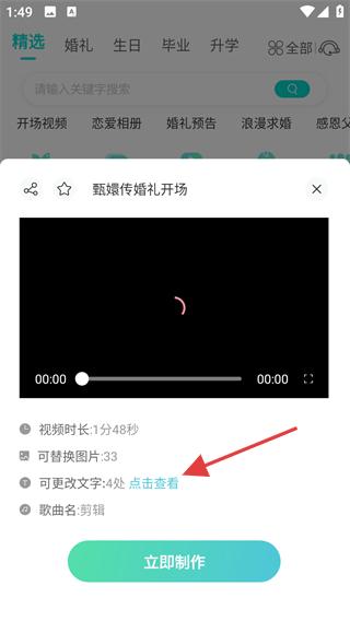 2、进入模板详情页,查看模板信息(时长、可替换图片/文字数量),点击【立即制作】。