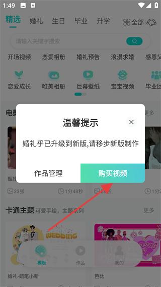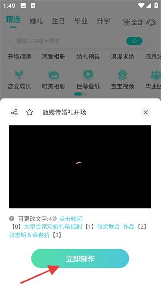 1、打开婚礼乎,在模板列表中选择目标模板(如“甄嬛传婚礼开场”)。