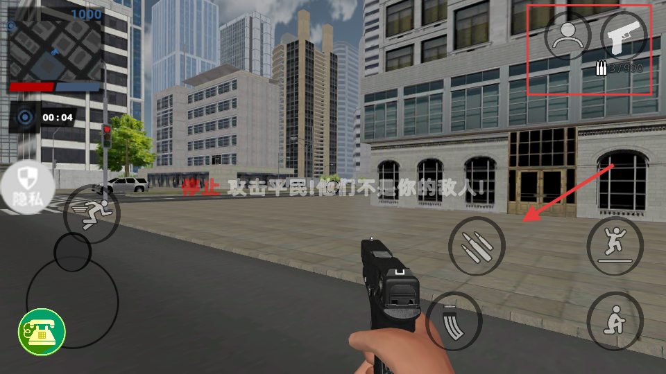 4、战斗时看右上角【角色状态-37990】,别攻击平民,按箭头指向的门方向推进任务。