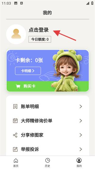 1、打开修图家,点击底部【我的】进入个人中心。